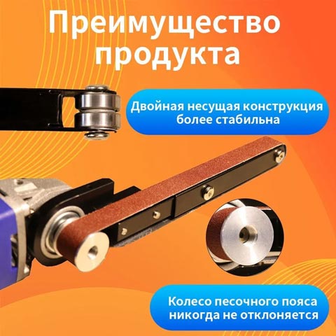 Благодаря конструкции с двумя подшипниками, которая является более стабильной, и шкивом с абразивным ремнем с канавками, который имеет длительный срок службы.